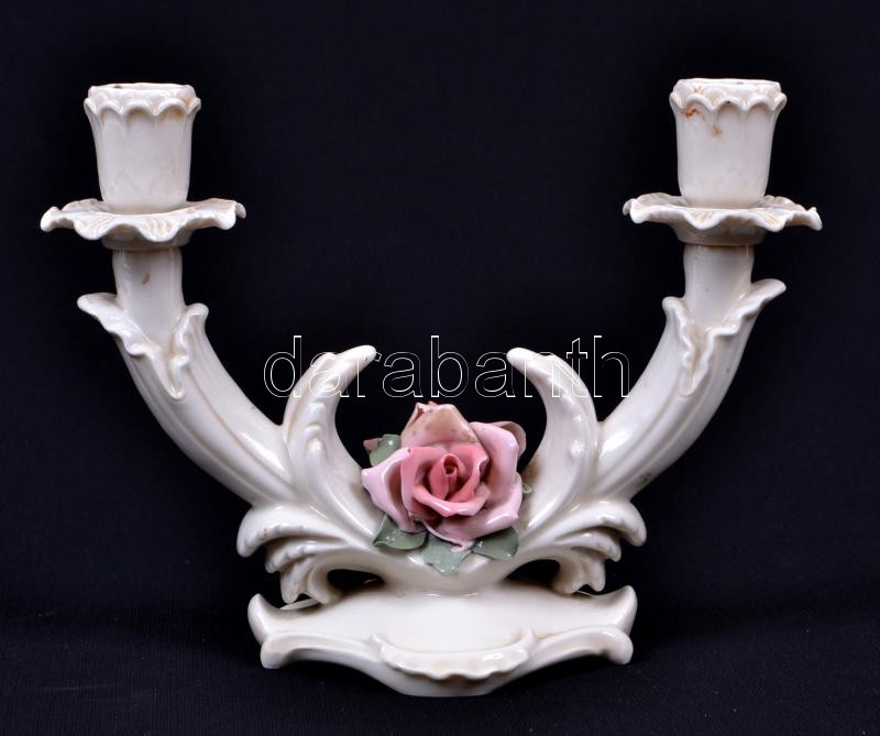 ENS Volkstadt Porzellan rózsás gyertyatartó, apró lepattanások a rózsá...