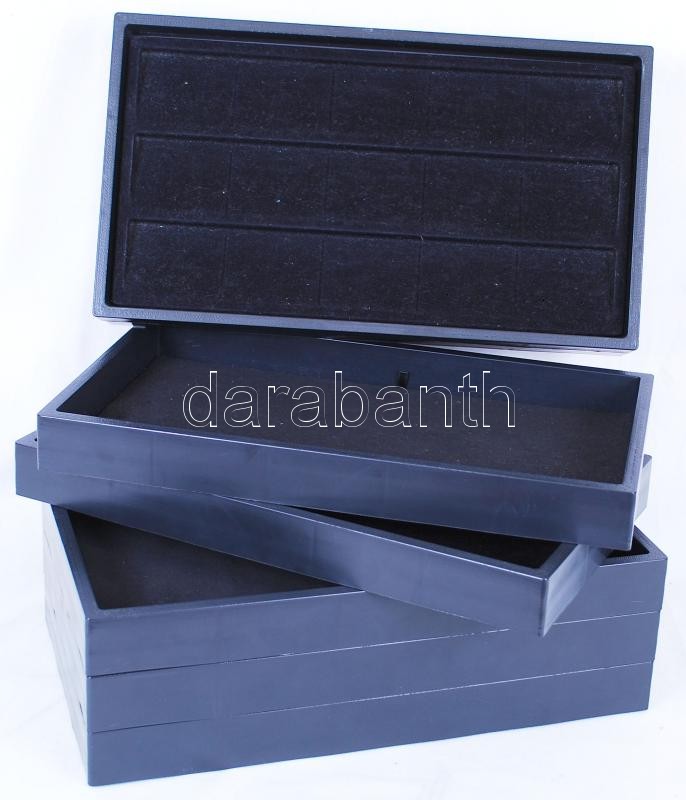 Hordozható bemutató készlet. Bemutató táska 5 db 36x27 cm-es, plüssel bélelt rekesszel ékszerek, ásványok számára, vagy numizmatikához