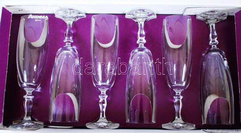 Andrea 6db-os komplett csehszlovák kristály pezsgőspohár készlet eredeti dobozában /