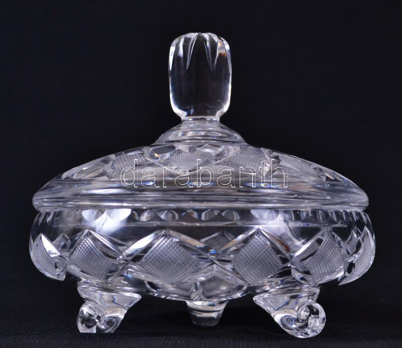 Kristály bonbonier, csiszolt, metszett, hámozott, hibátlan, m:11 cm, d...