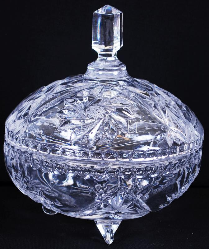 Kristály bonbonier, csiszolt, metszett, hámozott, hibátlan, m:17 cm, d...
