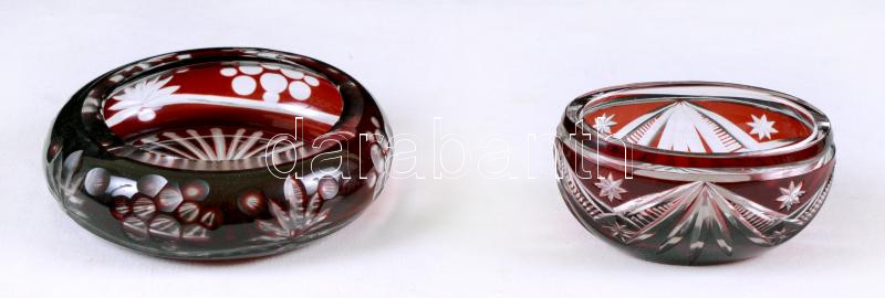 Kristály hamutartó és tálka, rubinvörös, többrétegű, csiszolt, hibátla...