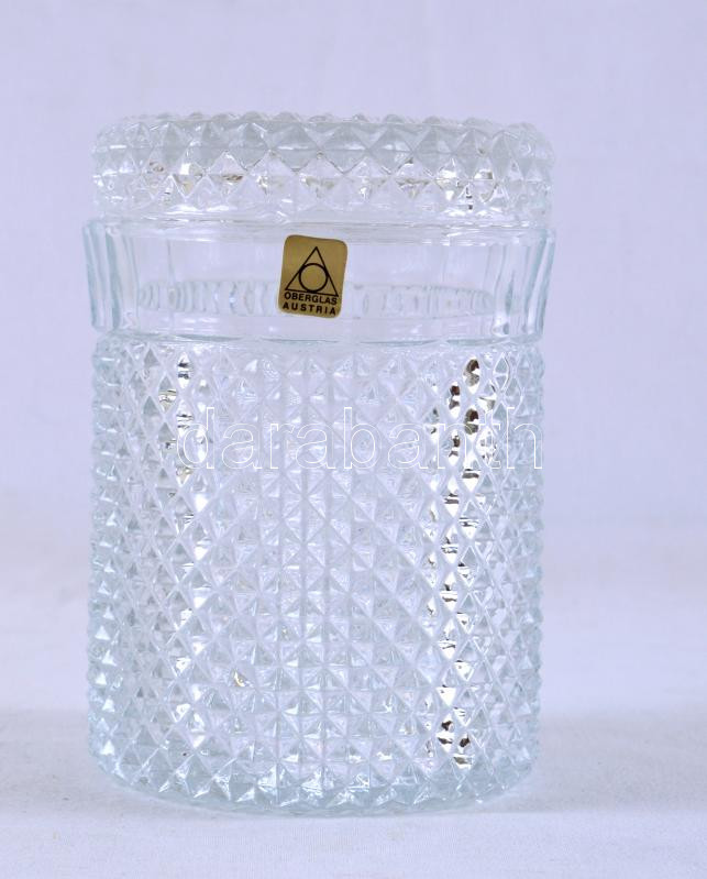 Kristály üvegtartó, formába fújt, hibátlan, m:14 cm, d:9 cm / Crystal ...
