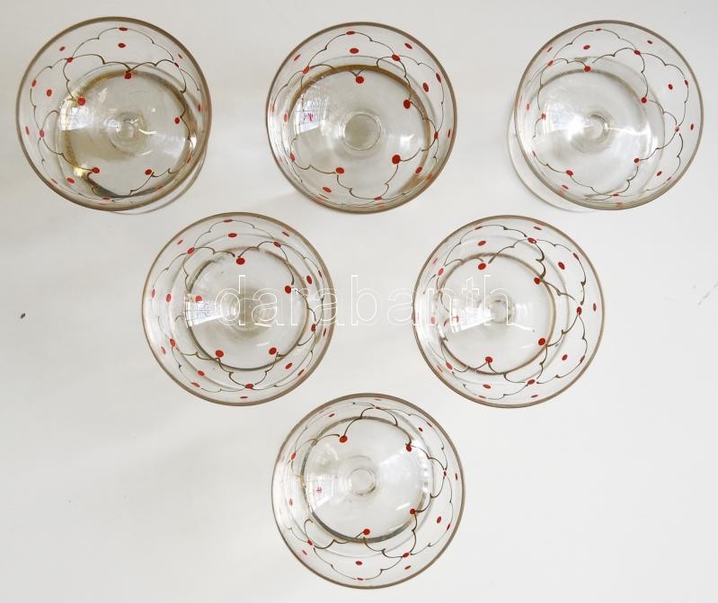 Likőrös poharak, kézzel festett, egyiknek a talpán 7mm-es csorba, összesen 6 db