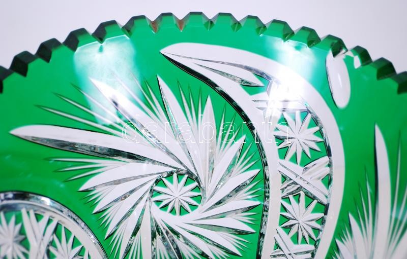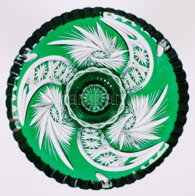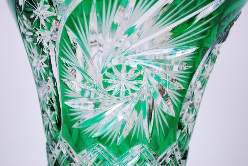 Nagy kristály urán-zöld váza, többrétegű, csiszolt, metszett, hámozott...