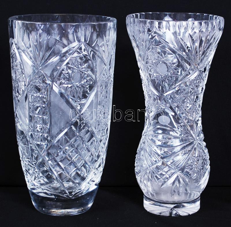 Ólom kristály váza tétel, csiszoltak, hámozottak, hibátlanok, m:21 cm, összesen: 2 db /Lead crystal vases