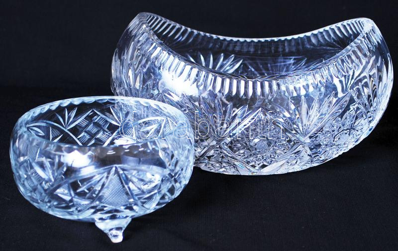 Ólomkristály bonbonier fedő nélkül és egy kínálókosár, mindegyik csisz...