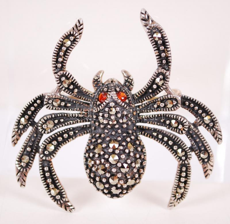 Tarantula, silver brooch with marcasites and granites, 4x4cm, br: 7,5gr