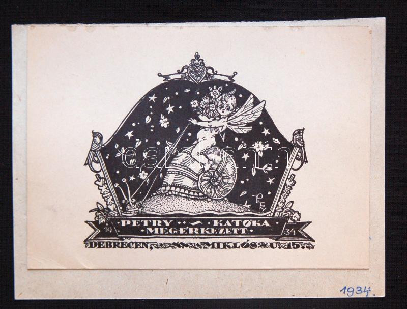 1934 Petry Béla Albert (1902-1996): Ex libris fametszet, papír 15x11 ...