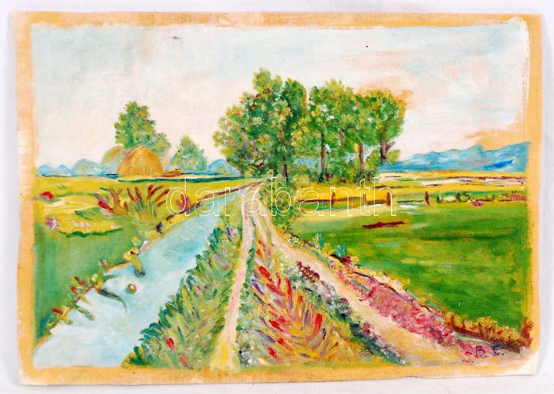B.F. jelzéssel: Idilli táj. Olaj, vászon-karton, 21×30 cm