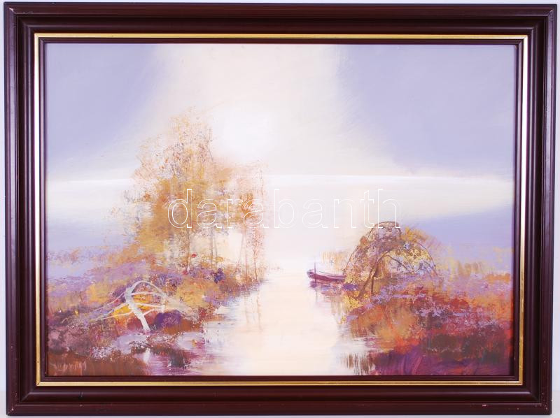 Balogh Ervin (1925-): Fény a vízen. Olaj, farost, jelzett, szép keretben 62×81 cm