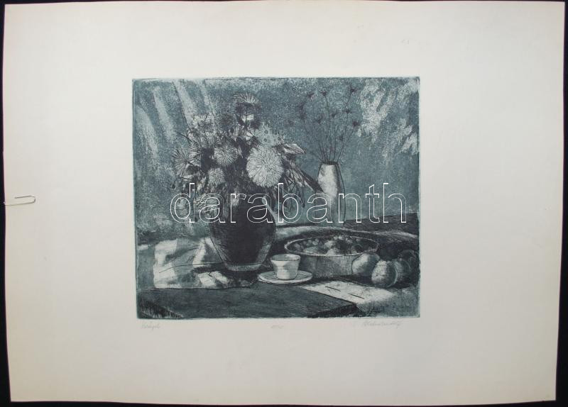 Blahos Rudolf (1917-1986): Virágok, rézkarc 15/75, papír, jelzett, 24x...