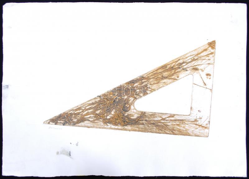 Koronczi Endre (1968-): Vonalzó. Rézkarc, papír, jelzett, 14×11 cm