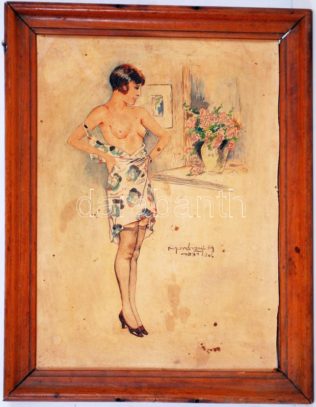 Murányi A. jelzéssel: Vetkőző 1931. Akvarell, papír-karton, apró foltokkal, keretben 39×30 cm