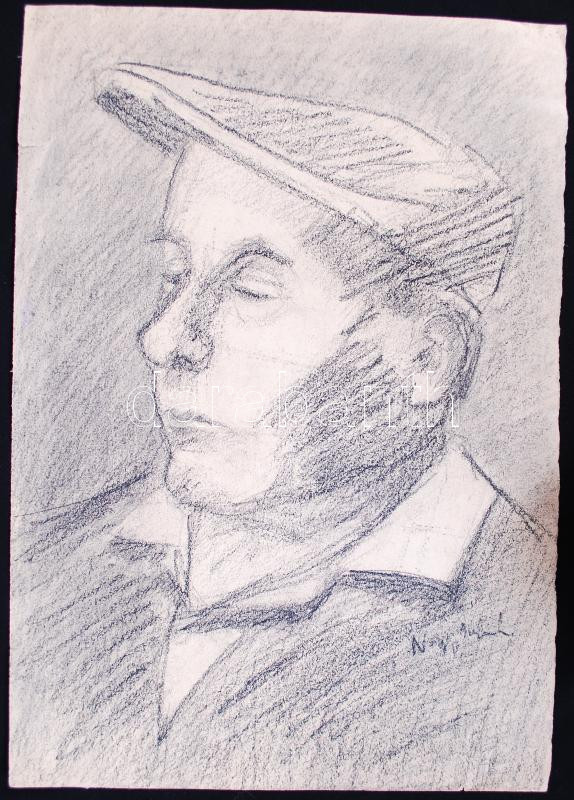 Olvashatatlan jelzéssel: Kalapos férfi. Ceruza, papír, 43×31 cm