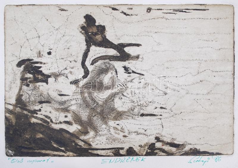 Sutyi jelzéssel: Endrének. Rézkarc, papír, 19×29 cm