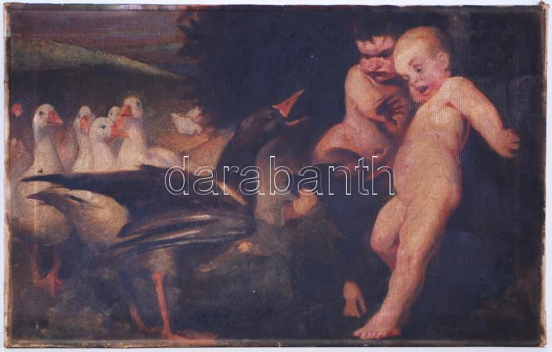 Wiesner jelzéssel: Puttók gúnárral. Olaj, vászon, jobbra fenn: "Benczúr Gy. után Wiesner", 44x69cm (sérült)