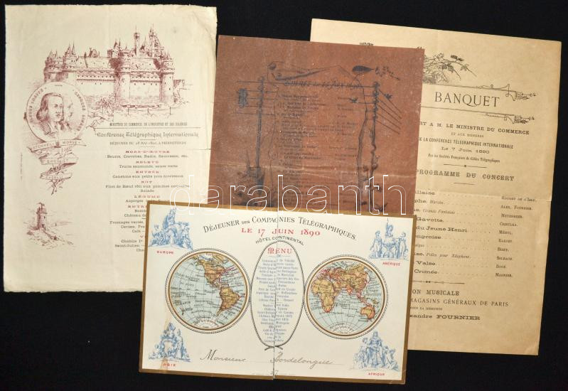 1890 A Nemzetközi Távírdai Kongrasszus 4 db menükártyája vegyes minőségben / 4 menu cards of the International Telegraphic Congress