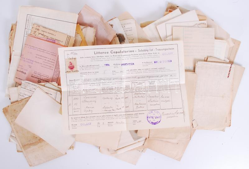 cca 1900-1940 Cipősdoboznyi nyomtatvány és okmány hagyaték tétel, sok ...