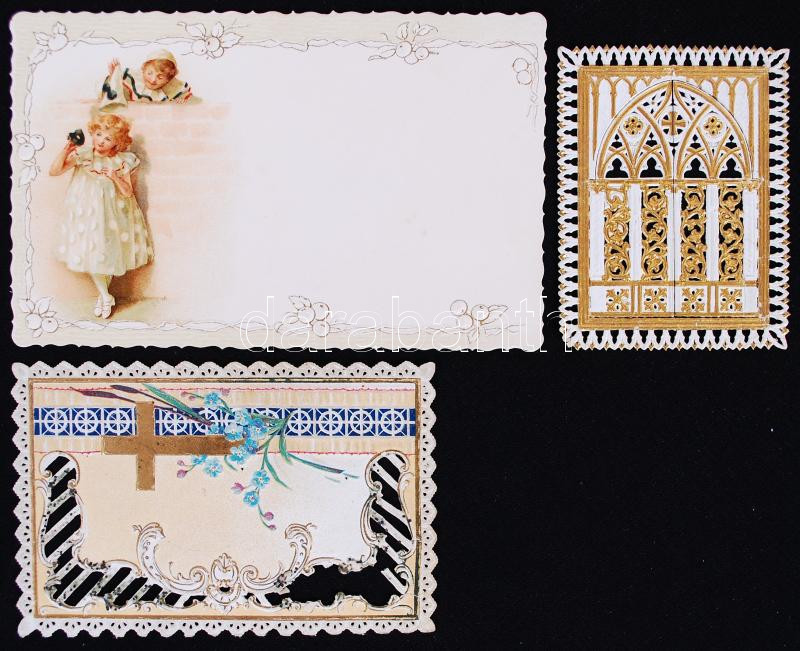 cca 1900 3 db csipke, litho szentkép és üdvözlőkártya