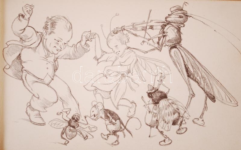 Márton Lajos (1891-1953): Jubileumi Márton-album. Litográfia-sorozat. [Bp.], [1936], A szerzÅ‘ sajátja. Zsinórral fűzött, illusztrált papÃrborÃtóban, verzóján a szerzÅ‘ saját kezű aláÃrásával