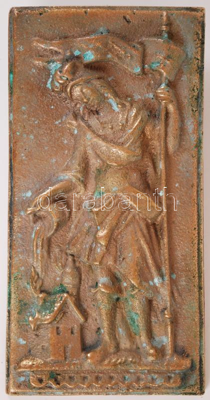 Cca 1900 Szent Flórián a tűzoltók védő szentje. Bronz, 17×9 cm