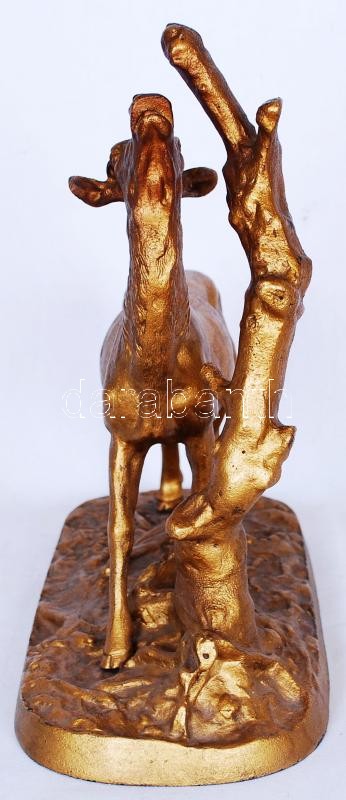 Szarvas a fánál. Festett öntöttvas, agancs hiányzik. m:35 cm, h:33 cm,...
