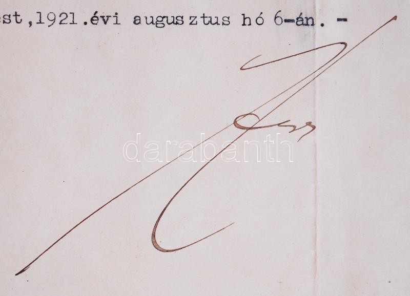 1921 Kinevezési dokumentum Hegedüs Lóránt pénzügyminiszter saját kezű ...