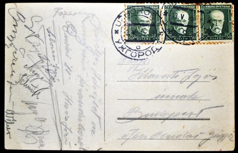 1939 A Budai 11 labdarúgó csapat tagjainak saját kezű aláírása képeslapon Ungvárról