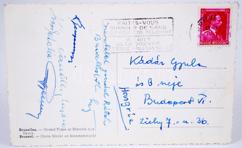 cca 1950 Dömölky Lídia olimpiai bajnok vívónő aláírása brüsszeli képeslapon