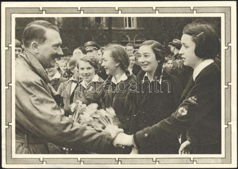 Adolf Hitler meeting girls, NS Propaganda, the Führer's 50th birthday So.Stpl Ga.