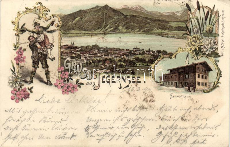 1899 Tegernsee, Neureuthaus, folklore, floral Art Nouveau litho (EK)