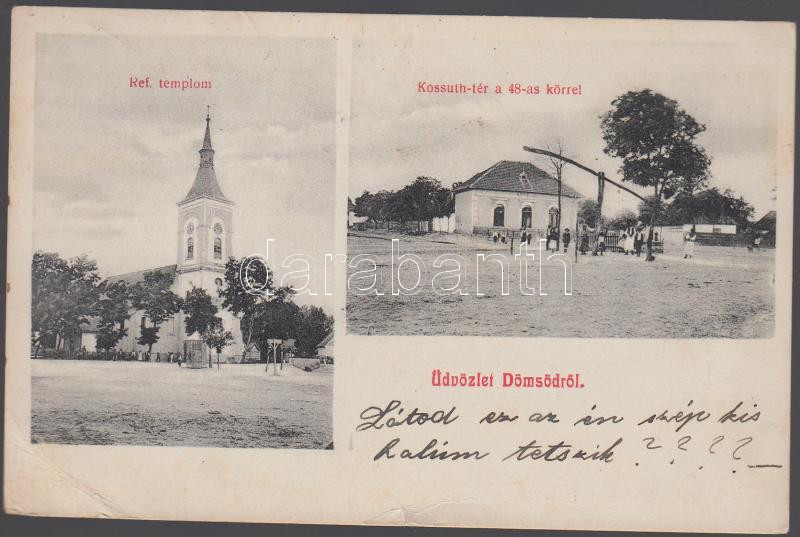 Dömsöd református templom, Kossuth tér a '48-as körrel (kis szaka...