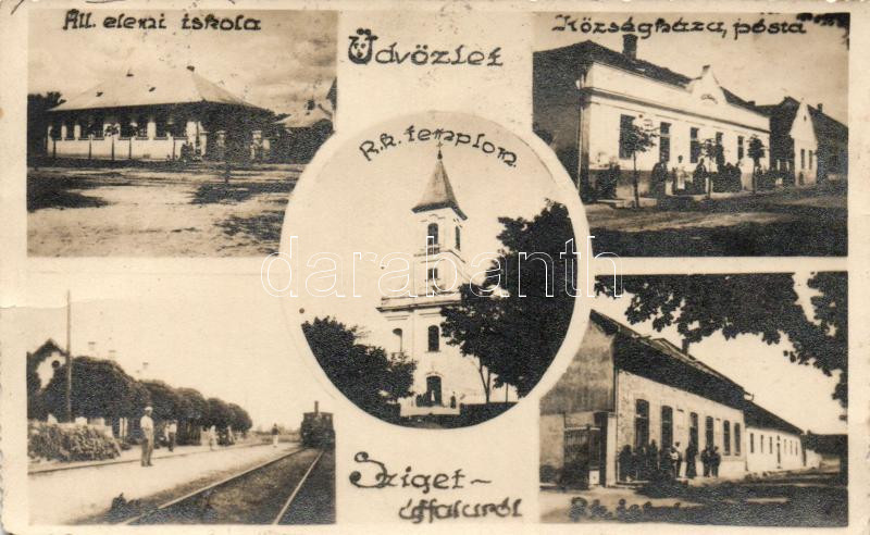 Szigetújfalu vasútállomás, községháza a postával, állami elemi iskola,...
