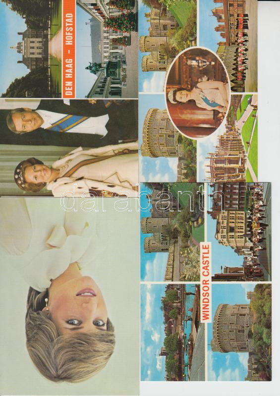 14 db modern képeslap uralkodókról és palotákról: Elisabeth II, Diana, Beatrix and Prince Claus of the Netherlands, Royal London, Buckingham Palace, St. James' Palace, Edinburgh, Windsor Castle, Old Fort Henry, Tower Guard