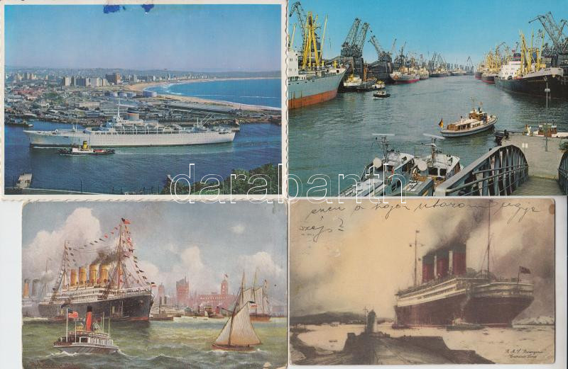 Description: 25 db nyugat-európai modern, hajómotívumos képeslap, valamint kikötők hajókkal, köztük 3 régi / 25 modern, Western Europe ship motive cards and ports with ships, between them 3 old cards