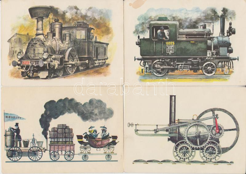 8 db modern, használatlan, gőzmozdonyokat ábrázoló motívumlap, pinx. K...