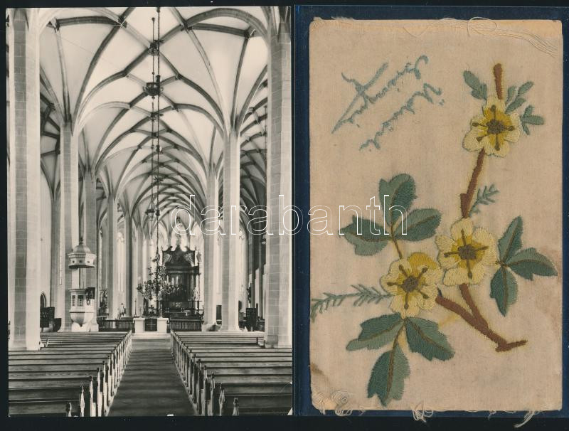 Description: 83 modern képeslap, fekete-fehér külföldi városképes lapok, benne 2 régi, egy virágmotívumos textil lap és a 34. nemzetközi Eucharisztikus budapesti kongresszus képeslapja