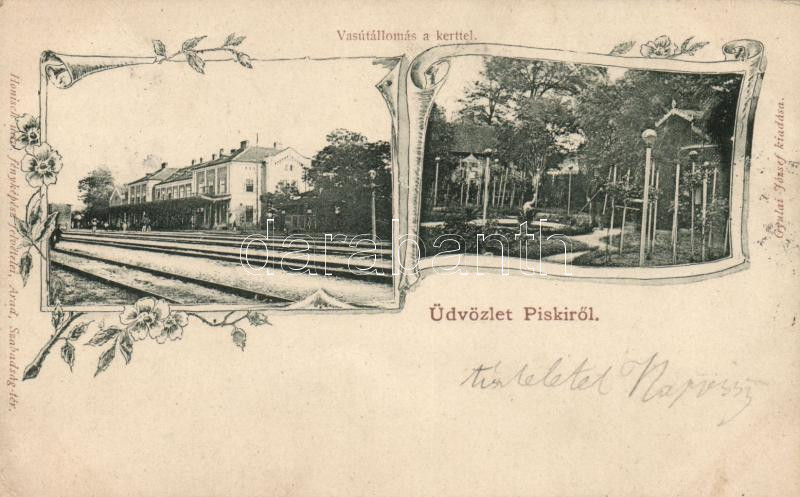 Piski, vasútállomás kerttel, Honisch fényképész felvétele / railway station, park, floral (Rb)