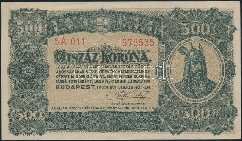 1923. 500K "T.W" nyomdahely jelöléssel T:II(Csak sarkok hajtottak)