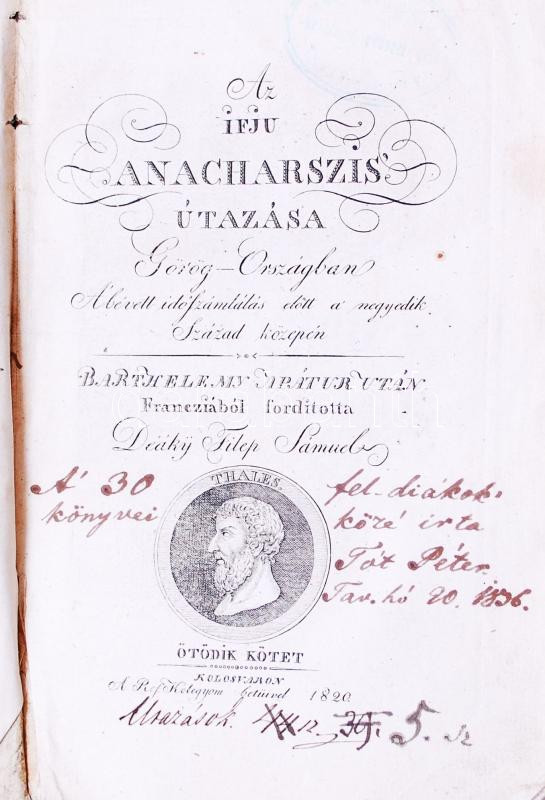 Barthelemy: Az ifju Anacharszis útazása Görög- Országban. A bévett idő... https://www.darabanth.com/en/183-Online-auction/183.0/Other-collectibles/Books-Other-rarities~5000037/Barthelemy-Az-ifju-Anacharszis-utazasa-Gorog-Orszagban-A-bevett-idoszamlalas-elott-a-n~II655966