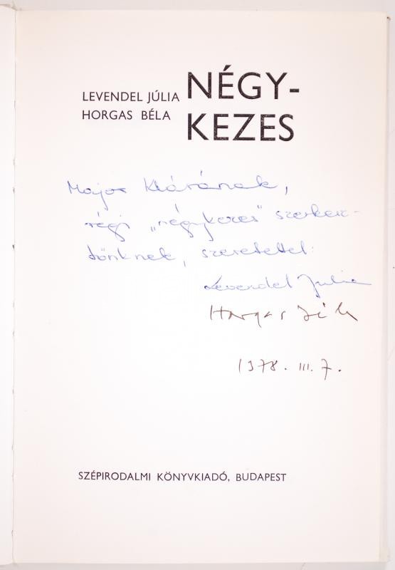 Levendel Júlia - Horgas Béla: Négykezes. Dedikált! Bp., 1978. Szépirod...