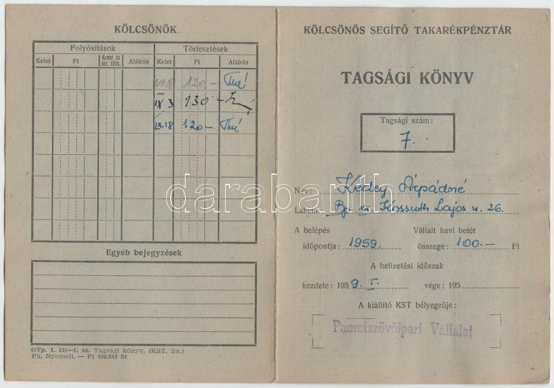 https://www.darabanth.com/en/183-Online-auction/183.0/Other-collectibles/Documents~5200015/1959-Kolcsonos-Segito-Takarekpenztar-tagsagi-konyv-tagsagi-belyegekkel-14C39710-cm~II657872