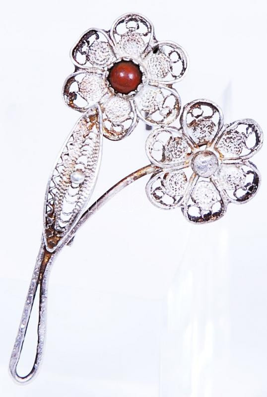 Virág alakú ezüst (Ag) filigrán bross féldrágakővel /