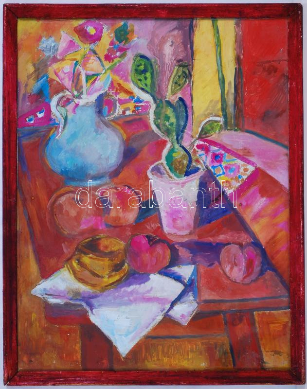 Jelzés nélkül: Kaktuszos csendélet. Olaj, farost, üvegezett keretben 5...