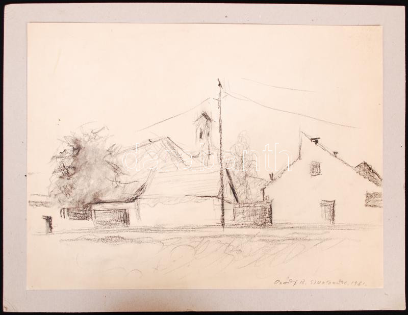 Ónodi Béla (1900-1991): Szentendre. Ceruza, papír, jelzett, 23×30 cm