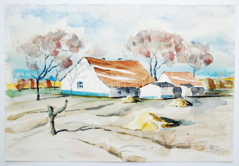 Patyi Árpád: Tanya. Akvarell, merített papír, jelzett, 22x33 cm