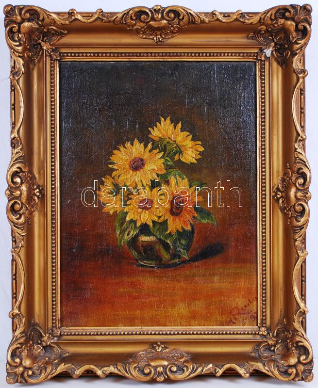 Rada 926 jelzéssel: Virágcsendélet. Olaj, vászon, antik keretben 55×44 cm, apró hiba a kereten