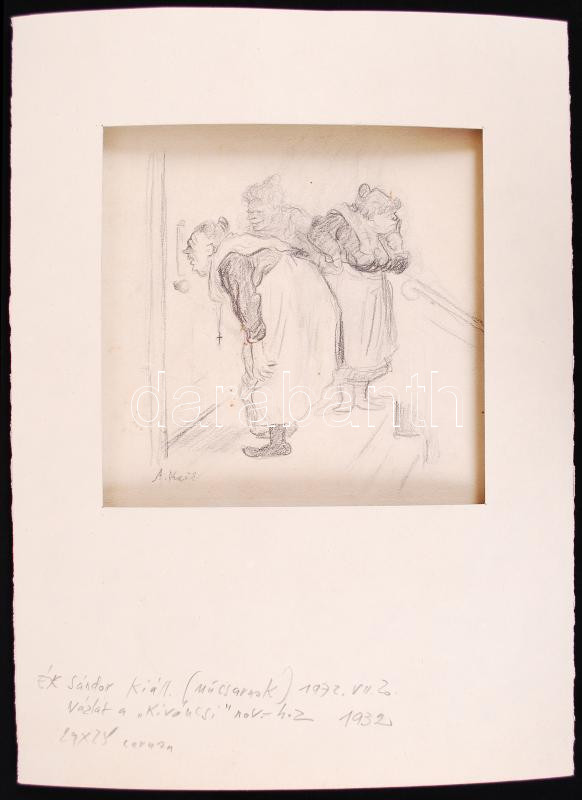 Ék Sándor (1902-1975): Kiváncsi öregasszony. Grafit, papír, jelzett ("A. Keil"), 29x25,5cm