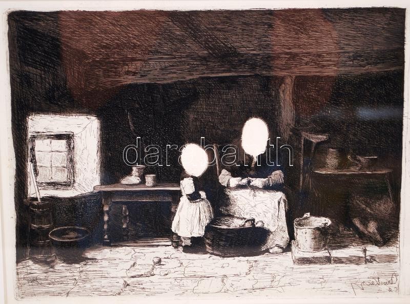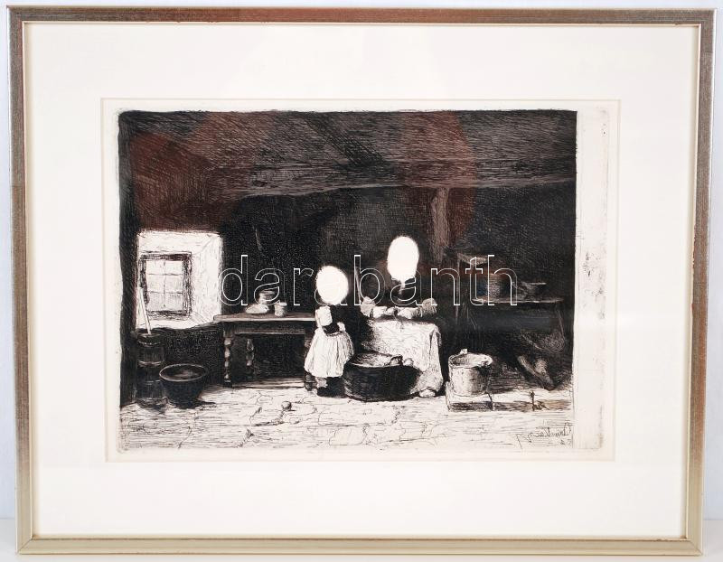 Munkácsy Mihály (1844-1900) egyetlen rézkarca. Akvatinta, rézkarc, papír, dúcon jelzett, üvegezett keretben, 31,5x39,5cm
